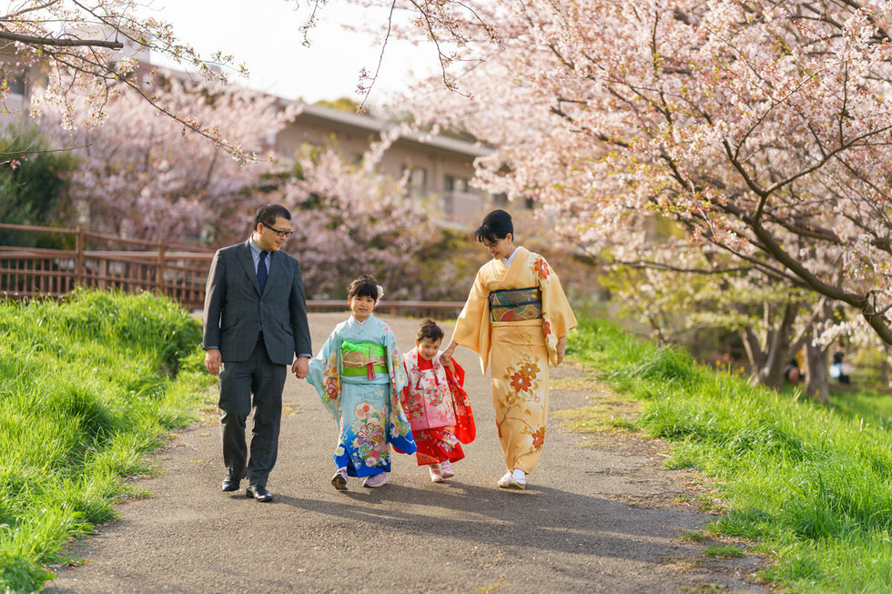 長津川親水公園 - 船橋の桜スポットでの七五三撮影