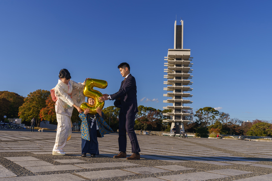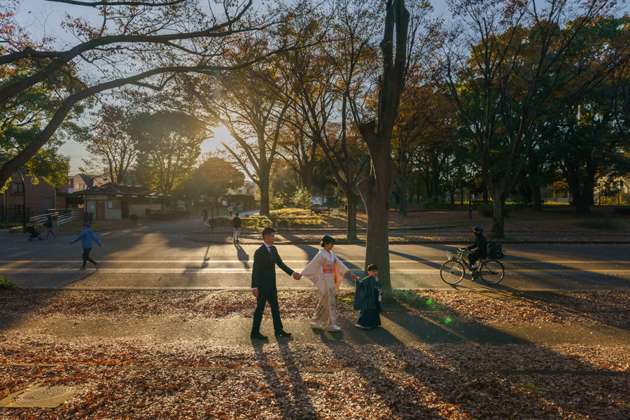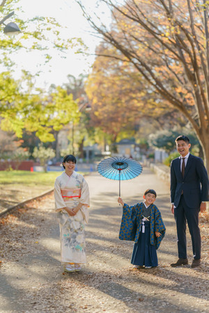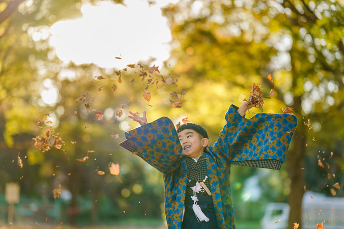 駒沢公園 - 紅葉がちりばめる自然たっぷりの公園での七五三撮影を