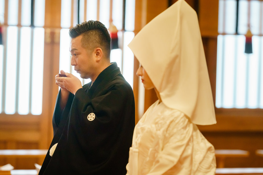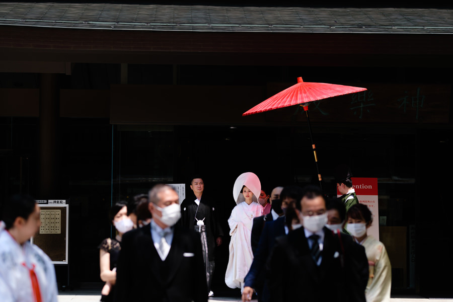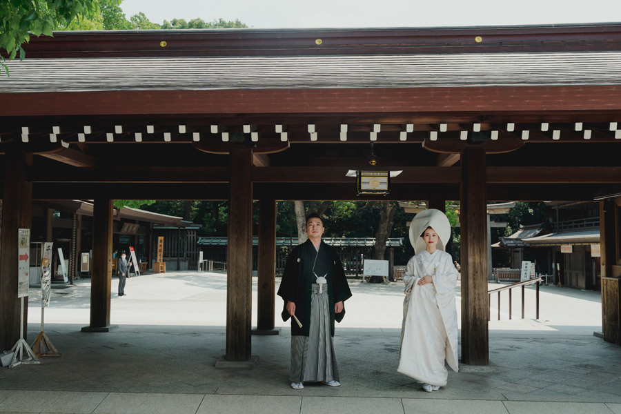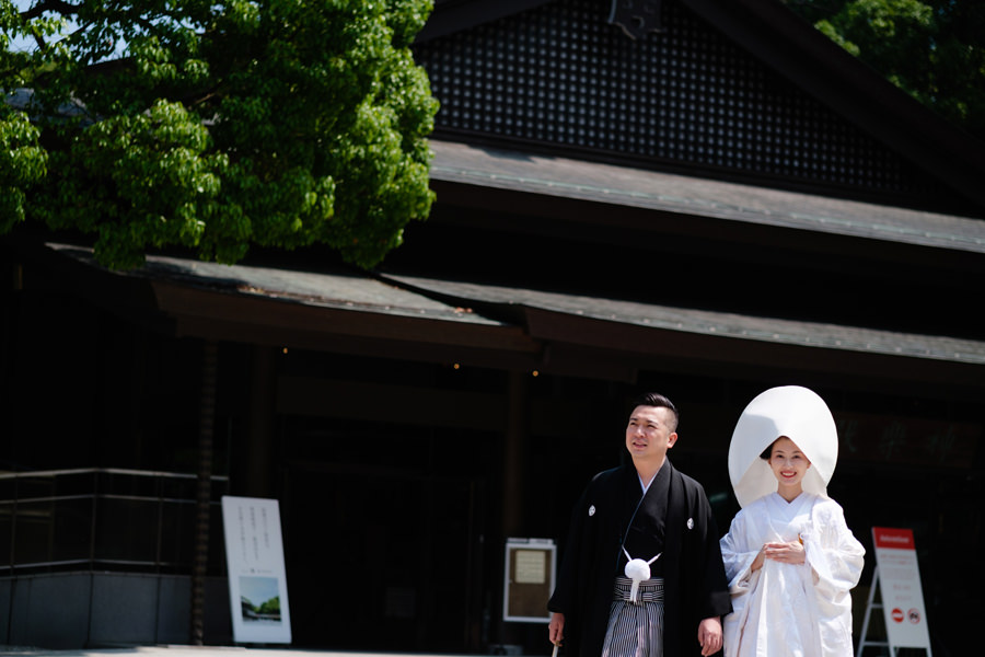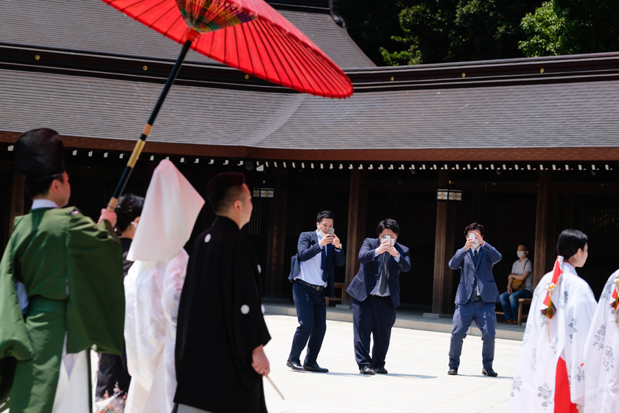 明治神宮で結婚式をされる方皆さんの憧れのシーンです。