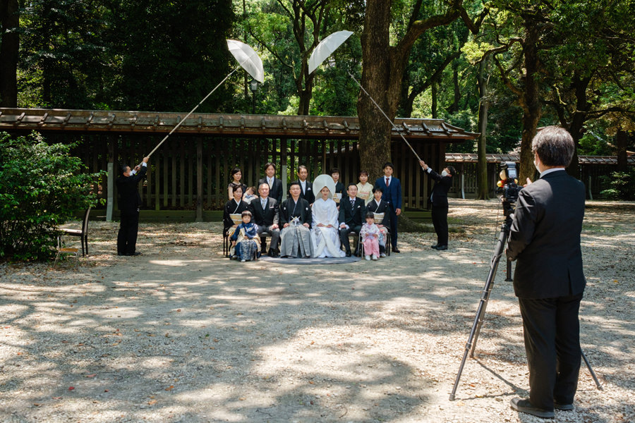 結婚式が終わると、会場の写真館さん達による親族集合写真の撮影が行われてます。