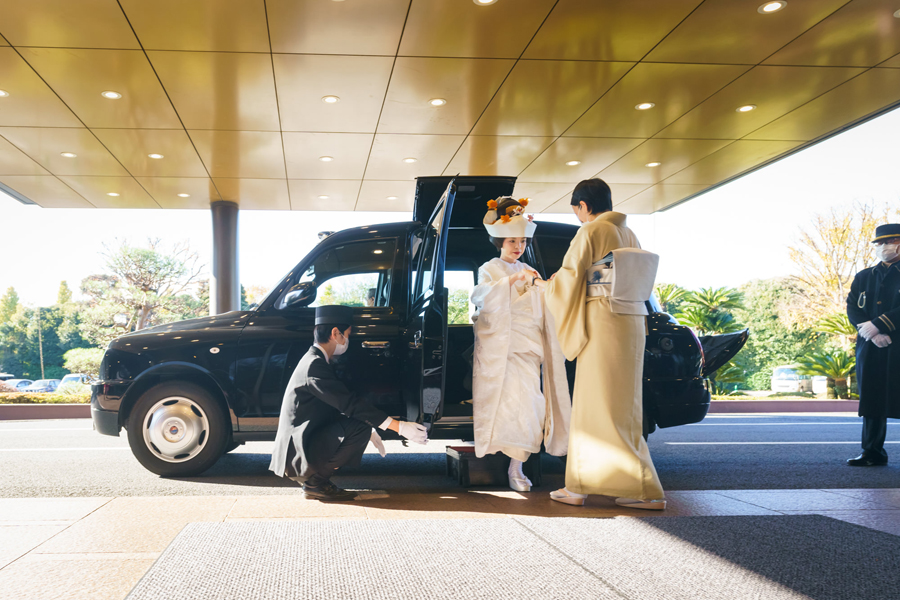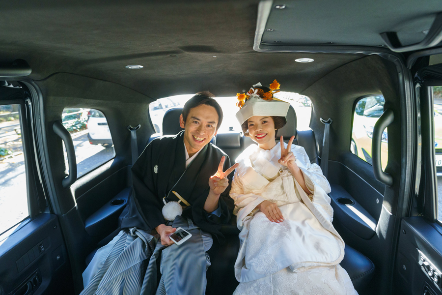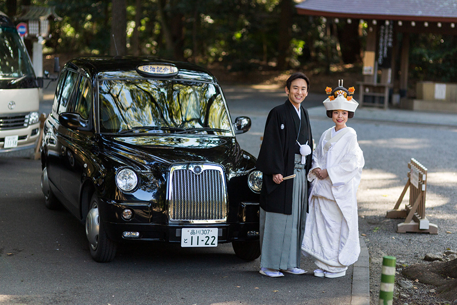 明治神宮での結婚式は14年前から撮影していますが、2012年くらいから急に移動用の車にロンドンタクシーが採用されるようになりました。