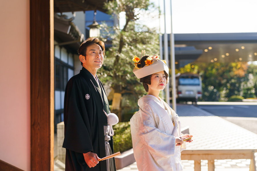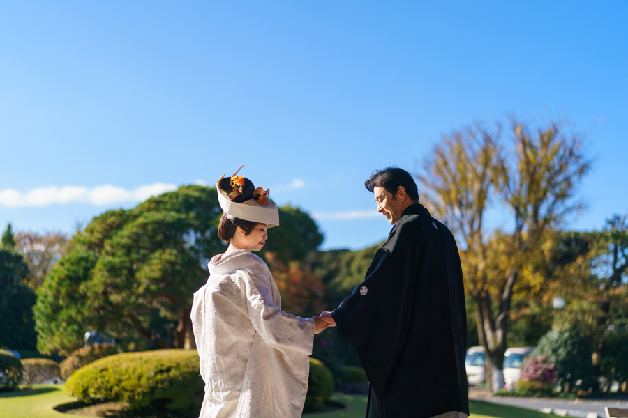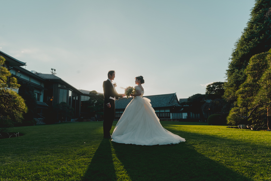 お支度を終えると新郎新婦のお二人はお庭へ。