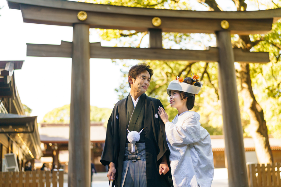そんな朝日を背景に、お二人から預かりした指輪写真から明治神宮での撮影はスタートします。