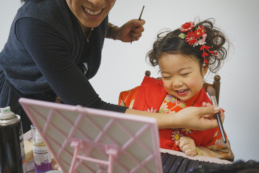 七五三という特別な日の風景に、少し日常の写真も取り入れる事で、