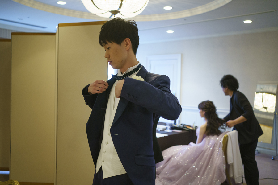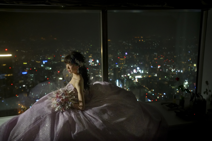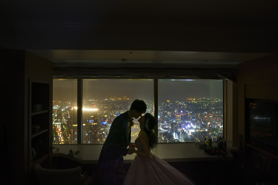 撮影スタートはお二人が滞在されていた高層階のお部屋にて。